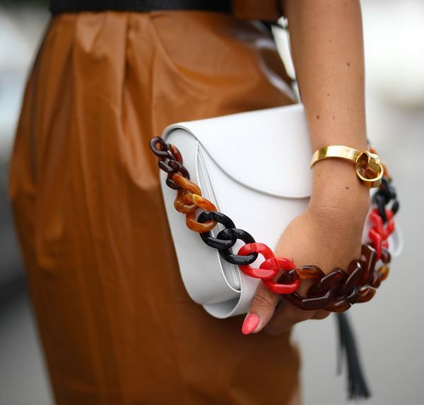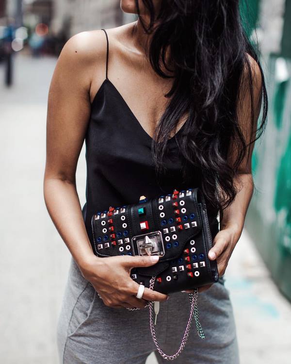 Даже в случае, если Вы минималистка, этими весной и летом непременно пополните свой гардероб модным аксессуаром в виде сумки с массивными разноцветными цепями из пластика или металлическими аналогами, красивыми пряжками, логотипами и эмблемами брендов, жемчугом и металлическими заклепками.